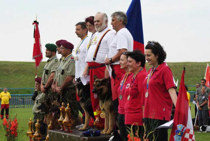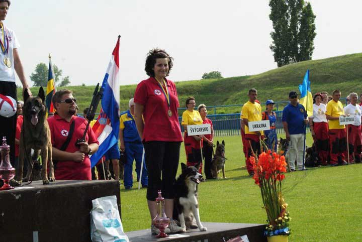 Nastupio je i trenutak proglašenja timskih rezultata i mi smo već pomalo mislili na uspješan povratak kući kad smo ovlaš jednim uhom načuli nešto poznato: nastala je pauza nakon iščitavanja trećeg timskog rezultata, timske bronce. Čekao se 3. tim, a mi smo se zbunjeno pogledavali jer nam se učinilo kao da smo čuli: K O S S P..... "Zagreb"!!!! KOSSP "Zagreb", pa oni su pročitali nas, ljudi moji... Ne mogu opisati kakva je panika nastala u našim redovima dok su svi čekali na nas: Marijo, uzmi kameru, Darja, pusti tu torbicu na pod, Ana - kamo ideš iza postolja, rukuj se sa ljudima (he-he, naučih lekciju)!!! Ajme meni, došli smo do tog postolja nekako u bunilu, smješkajući se poput male dječice sa velikim sladoledom u rukama i umazanog lica. Bili smo najnasmješenija ekipa na postolju, držeći se za ruke muškom čvrstinom. Tri žene na postolju, tri borderice, treće mjesto ekipno, treće mjesto individualno, sve je bilo u znaku magičnog broja 3 s početka priče. Čak je i poredak na postoljima poštivao pravilo broja 3: prvo mjesto češka ekipa s dva muška i jednim ženskim vodičem i 3 njemačka ovčara, drugo mjesto švicarska ekipa s 3 belgijska ovčara mallinois i treća ekipa naša velebna trojka, sve 3 pripadnice ženskog roda, i mi i psići.