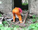 pušta da samostalno pretražuje ruševinu uz povremeno